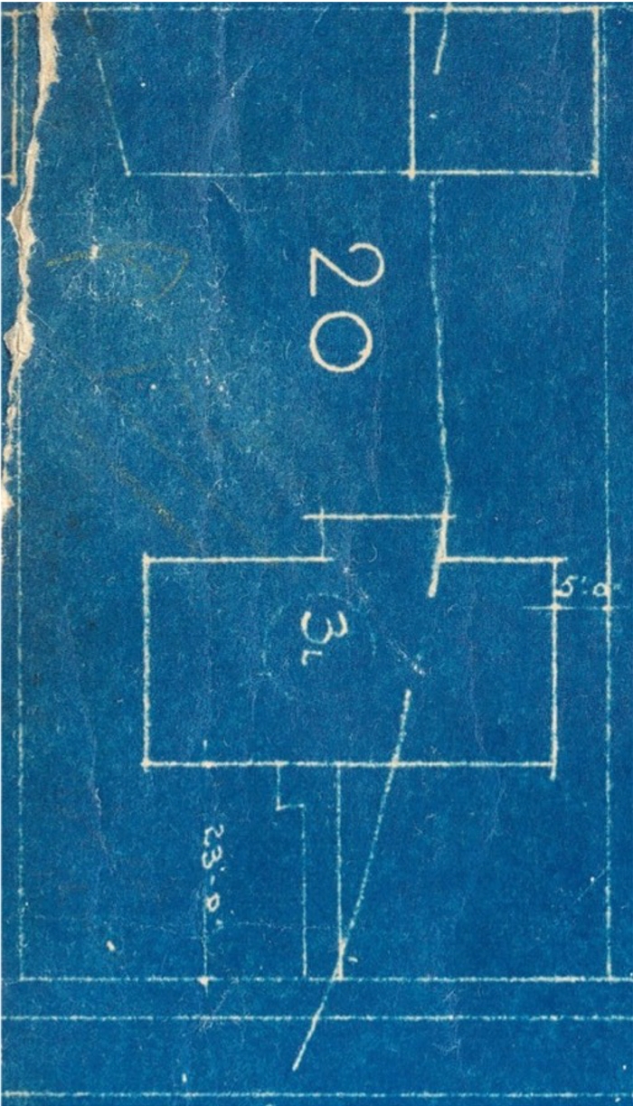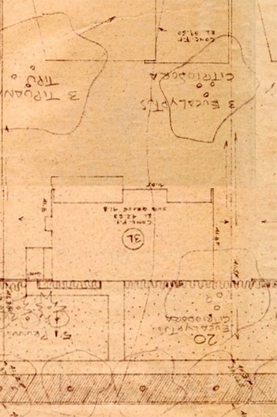 Original tract blueprint of 3515 Moore St: Original landscaping and fence: