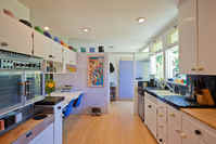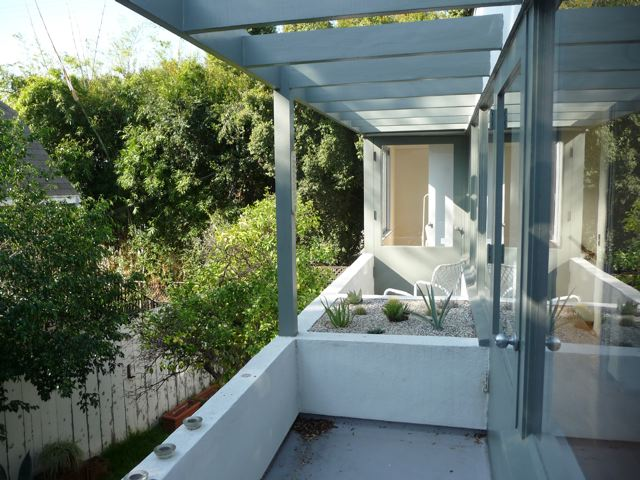 | REMARKS: The 10 unit Avenel Housing Project designed in 1947 by Gregory Ain of Ain, Johnson and Day, carefully uses the sites gentle slope to create private living spaces as well as individual walled gardens with an outlook to the surrounding hillside landscape. Architect Michael Folonis has redone this unit, not seeking to put his stamp on the design, but rather to reflect Ain's philosophy with contemporary cabinetry and surfaces in keeping with the International Style. Gregory Ain's ingenious vision and flexibility is exemplified by his use of mobile sliding walls, which open one room to the living space, and the other two additional bedrooms opening to one if desired. Residence includes: 2 bedrooms plus convertible den, open plan, living/dining area, laundry, terrace garden and single garage with additional parking space. Ivanhoe school district. | |||||